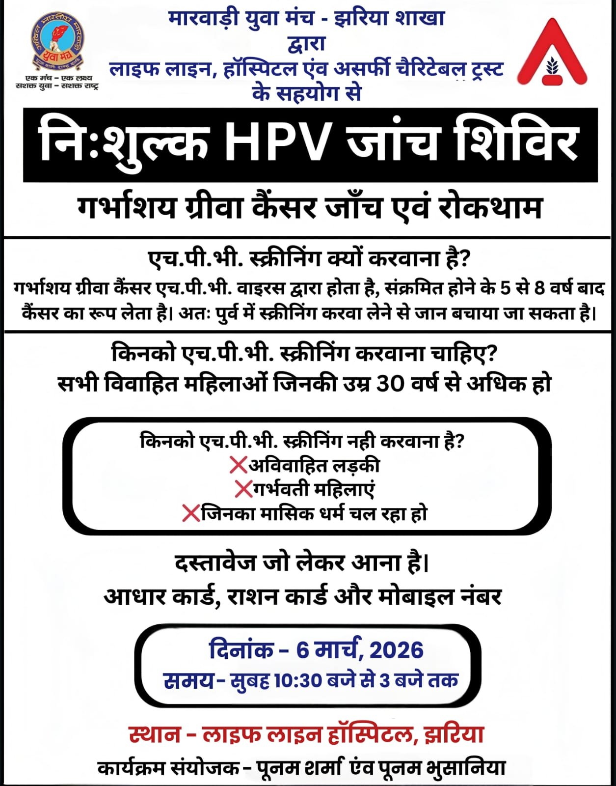 рдорд╛рд░рд╡рд╛рдбрд╝реА рдпреБрд╡рд╛ рдордВрдЪ, рдЭрд░рд┐рдпрд╛ рд╢рд╛рдЦрд╛ рджреНрд╡рд╛рд░рд╛ рдирд┐рдГрд╢реБрд▓реНрдХ рдПрдЪ.рдкреА.рд╡реА. рдЬрд╛рдВрдЪ рд╢рд┐рд╡рд┐рд░ рдХрд╛ рдЖрдпреЛрдЬрди…