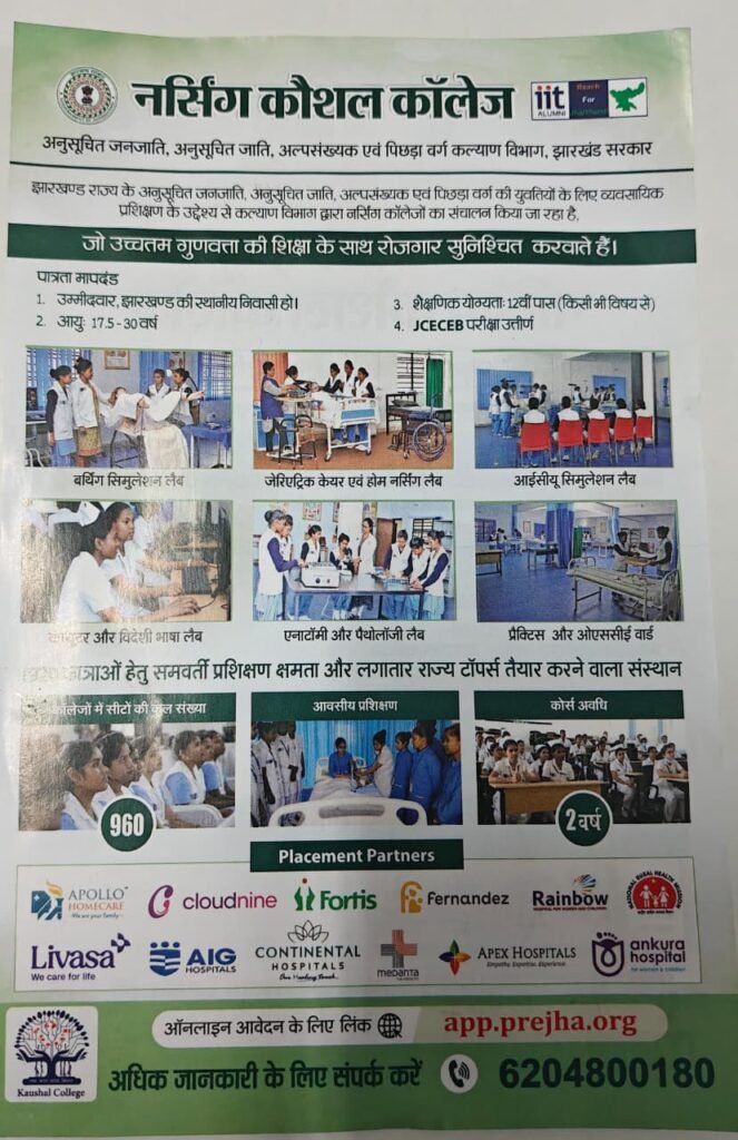 धनबाद(DHANBAD): उपायुक्त सह जिला दंडाधिकारी आदित्य रंजन की पहल पर झारखंड सरकार के अनुसूचित जनजाति, अनुसूचित जाति, अल्पसंख्यक एवं पिछड़ा वर्ग कल्याण विभाग द्वारा प्रायोजित तथा पेझा फाउंडेशन के सहयोग से धनबाद की गरीब, वंचित एवं सामाजिक रूप से पिछड़े वर्ग की छात्राओं के लिए ANM (Auxiliary Nurse Midwifery) नर्सिंग कोर्स में प्रवेश परीक्षा की तैयारी हेतु निःशुल्क कोचिंग कार्यक्रम संचालित किया जा रहा है।