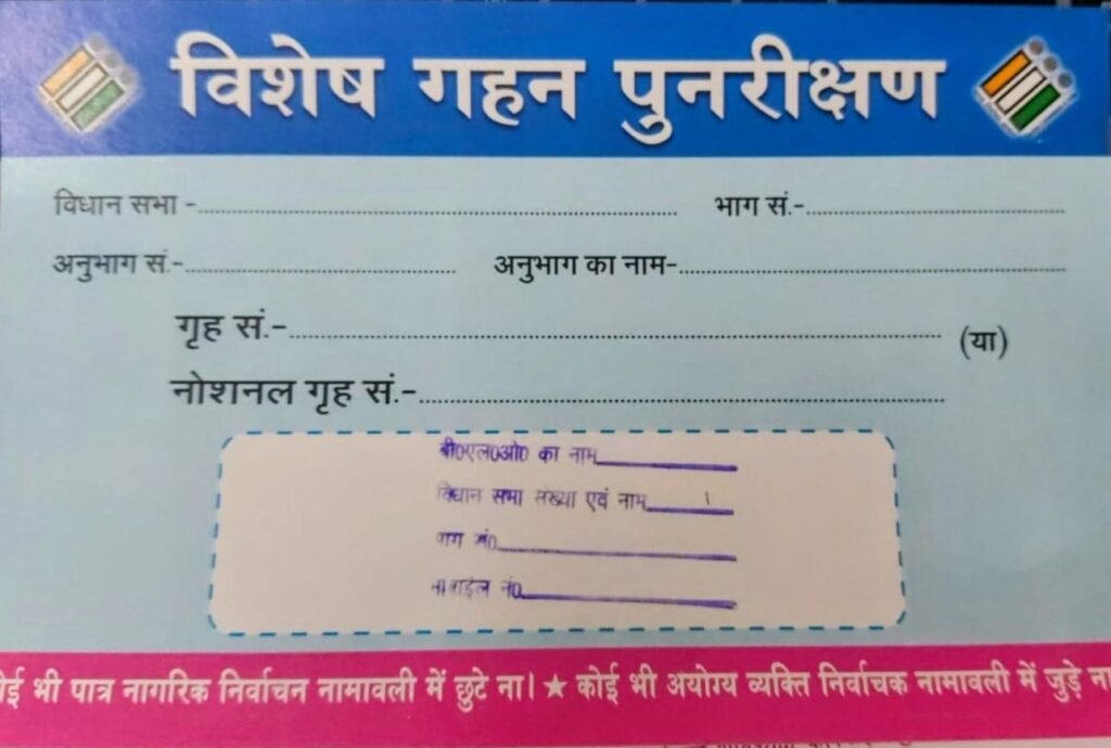 बताया जा यदि किसी गृह/घर का नंबर नहीं है तो बीएलओ द्वारा विभाग के निदेशानुसार एक काल्पनिक नंबर (नोशनल नंबर) भर के चिपकाया जायेगा। अप्रेल – 2026 में एसआईआर की घोषणा संभावित है।