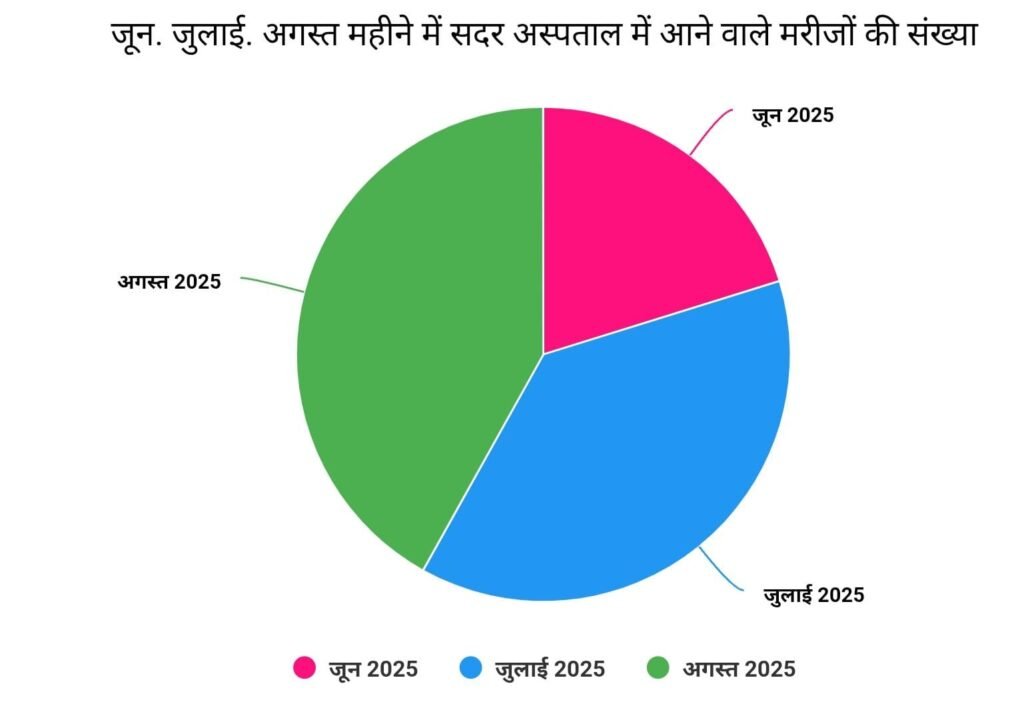 विगत जून महीने में जहां 6797 ओपीडी, 701 डायलिसिस, 100 नॉर्मल डिलीवरी, 1544 सैंपल टेस्टिंग व अन्य चिकित्सा के लिए 10620 व्यक्ति पहुंचे, वहीं जुलाई महीने में ओपीडी की संख्या 11812 हुई। 822 लोगों ने डायलिसिस करवाया, 212 नॉर्मल डिलीवरी हुई तथा 2724 सैंपल की टेस्टिंग के साथ 19916 लोग अस्पताल आए। जबकि अगस्त महीने में ओपीडी में आने वालों की संख्या 11868 पहुंच गई। 849 लोगों ने डायलिसिस कराया। 229 नॉर्मल डिलीवरी हुई। 4031 सैंपल की टेस्टिंग के साथ 22013 लोग अस्पताल आए।