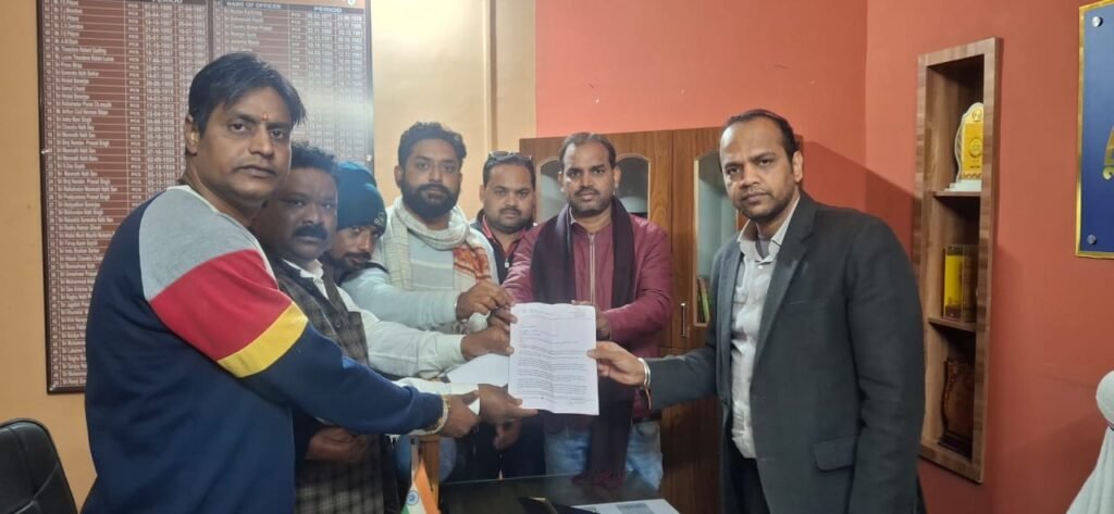 गांधी चौक पर भाजपा ने किया प्रदर्शन, चुनाव की तिथि तुरंत घोषित करने की मांग