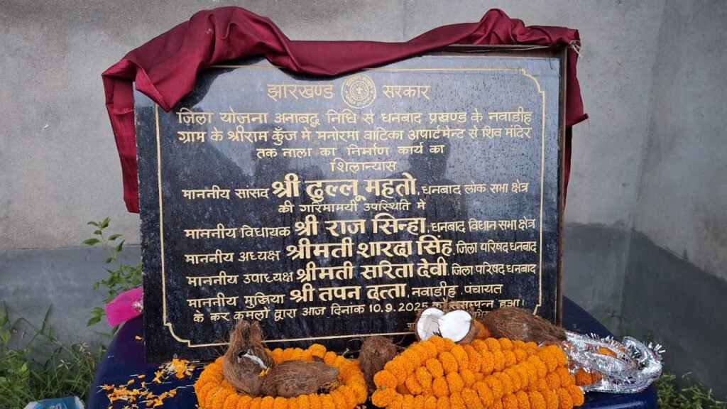 धनबाद(DHANBAD): धनबाद प्रखंड के नावाडीह में आज एक महत्वपूर्ण विकास कार्य की शुरुआत की गई। श्रीराम कुंज मे मनोरमा बॉटिका अपार्टमेंट होते हुए शिव मंदिर तक डीएमएफटी फंड से बनने वाले 1400 फीट लंबे नाले का शिलान्यास धनबाद विधायक राज सिन्हा द्वारा विधिवत पूजा-अर्चना और नारियल फोड़कर किया गया।