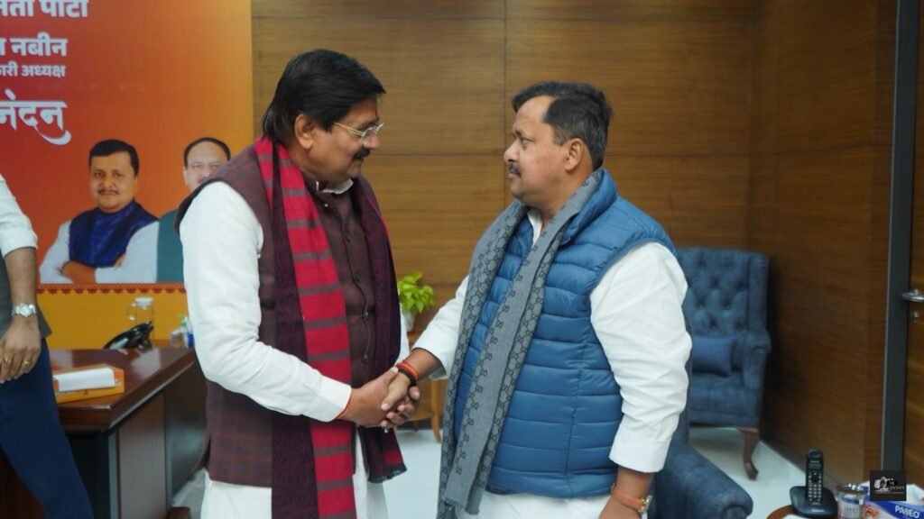 नई दिल्ली/धनबाद:झारखंड विधानसभा के सचेतक सह धनबाद विधायक राज सिन्हा ने आज नई दिल्ली में भारतीय जनता पार्टी के राष्ट्रीय कार्यकारी अध्यक्ष नितिन नवीन जी से शिष्टाचार भेंट की। कैलेंडर नववर्ष के शुभ अवसर पर विधायक सिन्हा ने उन्हें पुष्पगुच्छ भेंट कर नववर्ष की हार्दिक शुभकामनाएँ दीं।