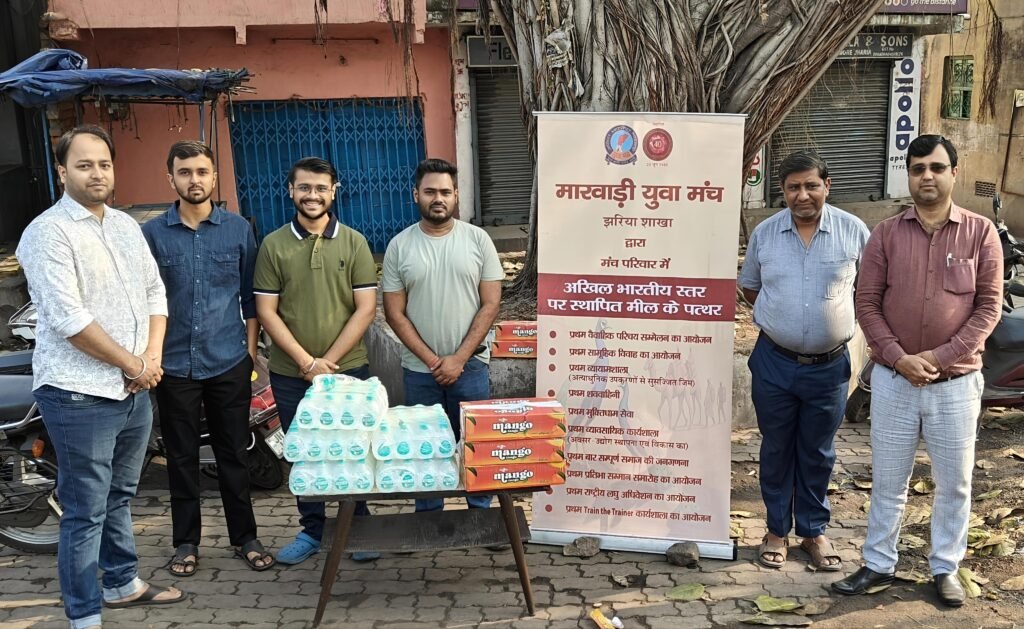 झरिया(JHARIA): शक्ति प्लाज़ा, जोराफाटक से श्याम मंदिर, झरिया धाम तक निकाली गई भव्य निशान शोभा यात्रा के पावन अवसर पर मारवाड़ी युवा मंच, झरिया शाखा द्वारा विहार टॉकीज़ रोड स्थित प्रसाद क्लिनिक के निकट श्रद्धालुओं के लिए शीतल पेयजल एवं मैंगो ड्रिंक सेवा का आयोजन किया गया।