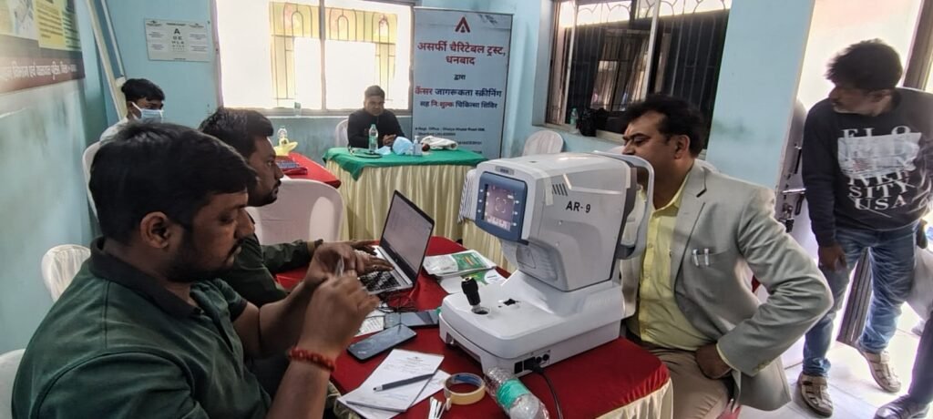 धनबाद(DHANBAD): राष्ट्रीय सड़क सुरक्षा माह के अंतर्गत धनबाद के असर्फी चैरिटेबल ट्रस्ट के सहयोग से जिला परिवहन कार्यालय परिसर में आज निशुल्क कैंसर जांच, बीपी, शुगर एवं नेत्र जांच शिविर का आयोजन किया गया। इस शिविर में कुल 82 लोगों ने स्वास्थ्य सेवाओं का लाभ लिया।