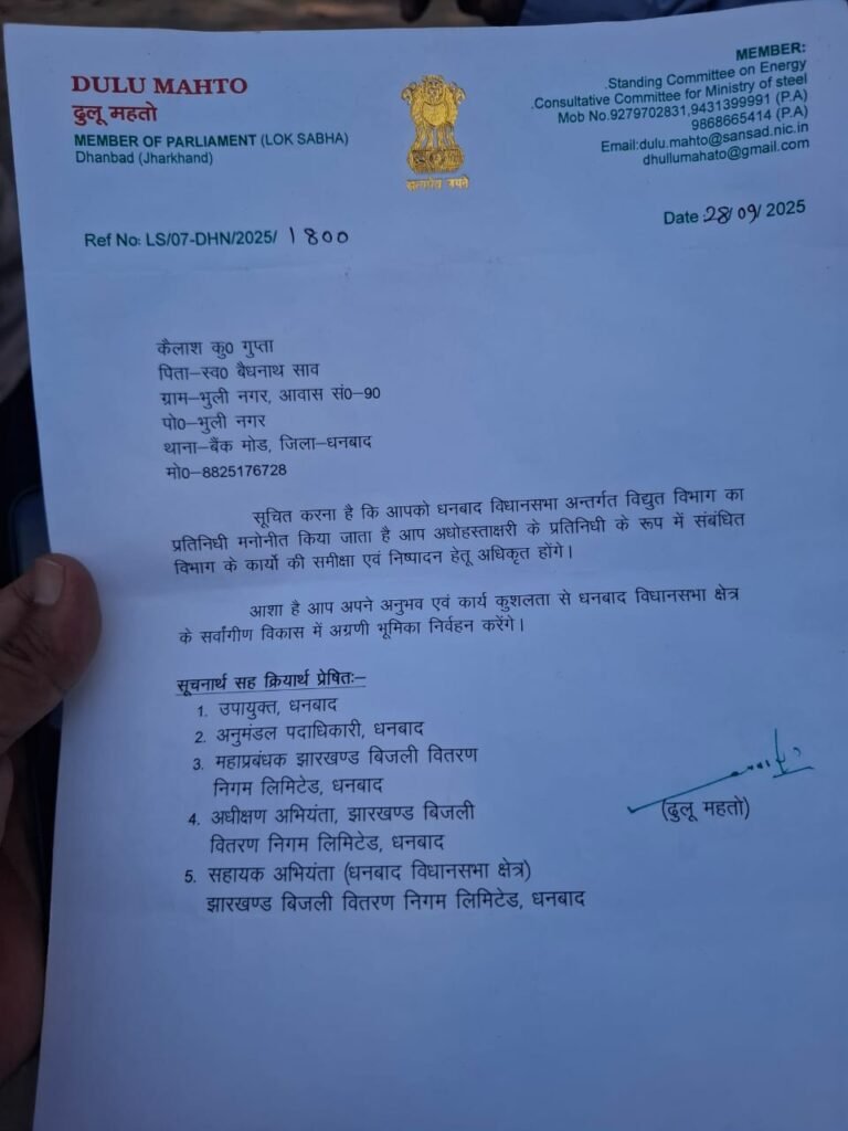 सांसद प्रतिनिधि कैलाश गुप्ता ने धनबाद विधानसभा में व्याप्त विद्युत जनित समस्याओं से अवगत कराया और निर्वाध रूप से विद्युत आपूर्ति निर्वाह करने की मांग की मांग की अधिकारी द्वय ने समस्या को गंभीरता से सुना और शीघ्र निवारण का आश्वासन दिया. इस अवसर पर भाजपा नेता संजय झा, अखिल भारतीय मध्यदेशीय वैश्य सभा के जिला अध्यक्ष विशाल कुमार गुप्ता, संतोष सिंह, मंतोष साव, विजय राणा आदि उपस्थित थे….