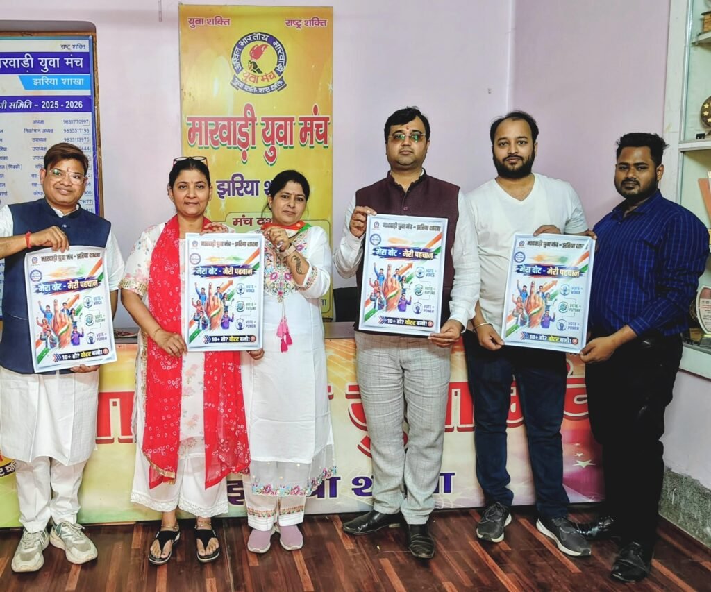 झरिया(JHARIA): मारवाड़ी युवा मंच, झरिया शाखा द्वारा मतदाता जागरूकता को लेकर व्यापक अभियान चलाया गया। इस क्रम में “मेरा वोट – मेरी पहचान” विषयक आकर्षक जागरूकता पोस्टर का विधिवत लोकार्पण युवा मंच कार्यालय, हेटलीबांध में संपन्न हुआ।