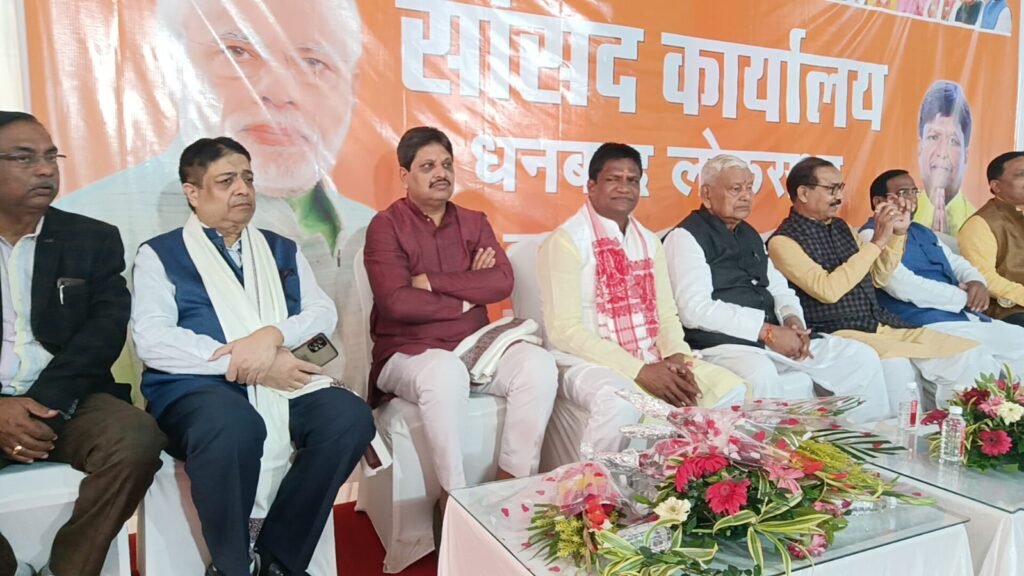 धनबाद (DHANBAD)जगजीवन नगर,(साइबर थाना के बगल में, बांग्ला नंबर दो) धनबाद में धनबाद संसदीय कार्यालय का उद्घाटन किया गया। इस अवसर पर सैकड़ों भाजपा कार्यकर्ताओं की मौजूदगी में पूर्व सांसद पीएन सिंह एवं वर्तमान सांसद ढुलू महतो ने संयुक्त रूप से फीता काटकर कार्यालय का विधिवत शुभारंभ किया। उद्घाटन के बाद, कार्यकर्ताओं को संबोधित करते हुए सांसद ढुलू महतो ने कहा, “मेरी प्राथमिक सोच हमेशा से यह रही है कि धनबाद के प्रत्येक वर्ग के लोगों को उनकी समस्याओं का समाधान मिले।